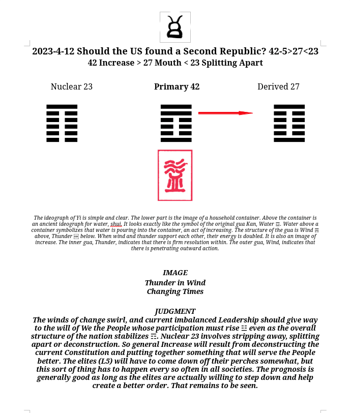 Another in this political-geopolitical series, and another loaded question which of course is implying that maybe it’s time for American citizens to ditch the old Republic and put together a new one – like is apparently the French can do much more easily, though whether it has proven helpful is probably debatable.