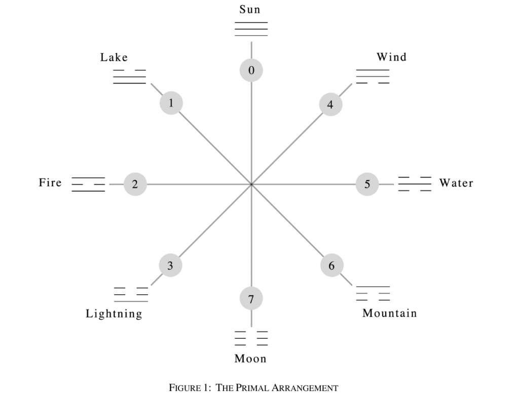 As manifestations of generative energy, each of the trigrams contains its own specific allotment of qi. When pictured in their archetypal relationships of opposite-complements, the trigrams are considered to be suspended in their timeless realm, prior to actually manifesting phenomena in the timebound realm